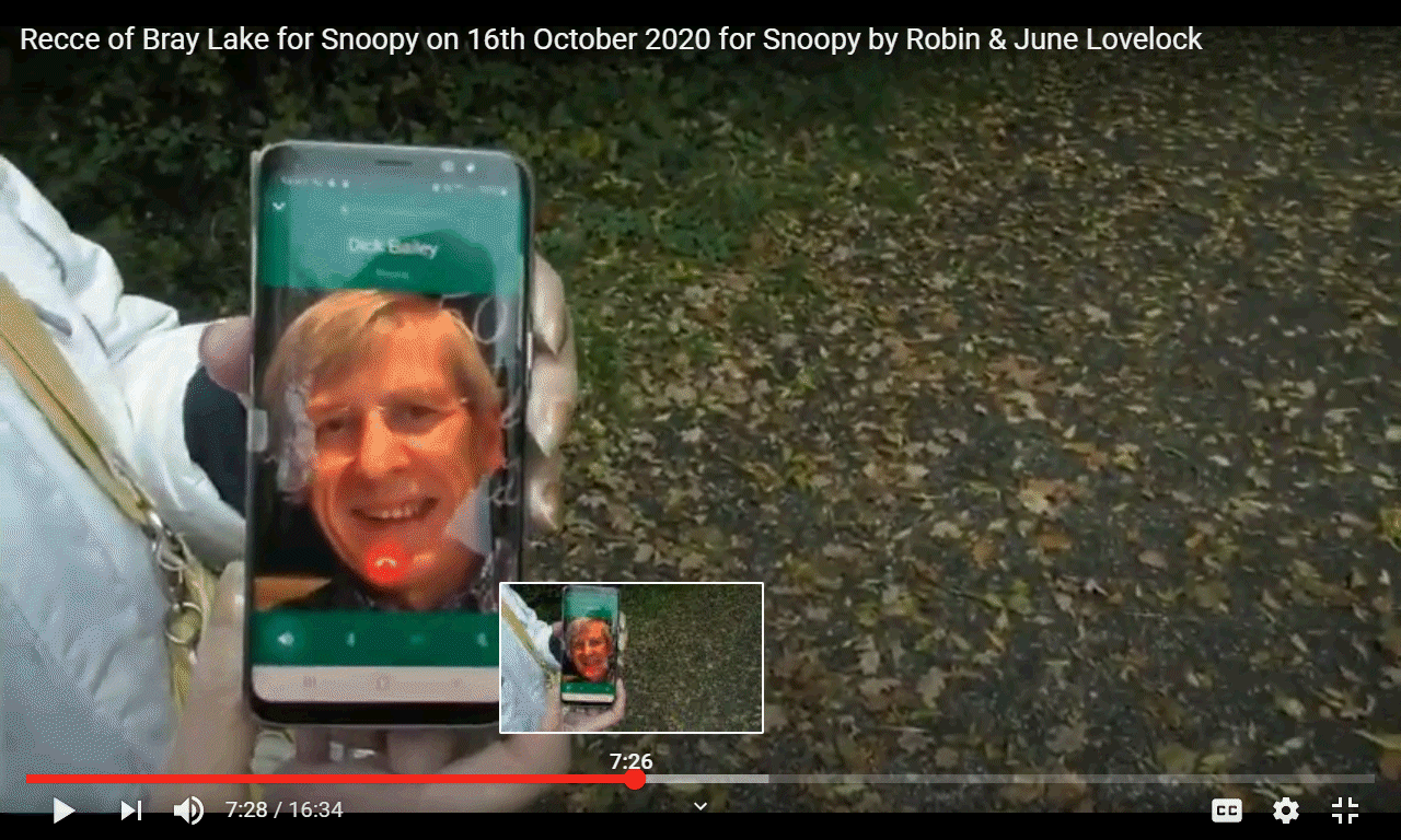 Bray Lake Recce on Friday 16th October 2020 Saturday 17th October 2020: Tap or Click on pictures to play the video or expand the pictures. Important changes were made to Robin's Contact page, related to our recent testing of video "chat". This is a useful tool for Snoopy's Robot Boat hobby project. On Friday, June and Robin had an appointment for a Zoom video chat with several work-mates from EASAMS This does not appear in the video, but I've inserted a picture, with an amusing story you can read on the page. The Zoom meeting was 1550 for 1600 BST, and we decided to do a recce of Bray Lake earlier, to make this video, and show that the place is still suitable for testing Snoopy's boat. The first picture is from the spare Spot Trace Satcoms tracker, currently in Robin's car. It also appears in our trip to check out Jim Lovelock's old place in Cornwall. The Snoopy page has the link SpotT2 . The next is from Robin's Pocket Cam, on the AVL page. Robin took his cheap Alcatel U5 smartphone, and June had her better Samsung one. It was used for a Whatsapp call to Dick, but he was otherwise engaged with a young grandchild :-) On the way home, we heard, on BBC Radio 2, that our Windsor & Maidenhead Council had asked the Government to go to the next higher level. You will see some TV news. We did Zoom on June's Windows 10 Laptop. You will see the almost complete wiring of Snoopy's electronics box, and also Robin testing the big roll of self-fluxing solder, that should last him and his friends for years ! white strip Bray Lake Recce on Friday 16th October 2020 Spot Trace 2 in car Bray Lake Recce on Friday 16th October 2020 Robin's Pocket Cam Bray Lake Recce on Friday 16th October 2020 Bray Lake Recce on Friday 16th October 2020 Bray Lake Recce on Friday 16th October 2020 Bray Lake Recce on Friday 16th October 2020 Bray Lake Recce on Friday 16th October 2020 Bray Lake Recce on Friday 16th October 2020 Bray Lake Recce on Friday 16th October 2020 EASAMS Bray Lake Recce on Friday 16th October 2020 Bray Lake Recce on Friday 16th October 2020 Bray Lake Recce on Friday 16th October 2020 Bray Lake Recce on Friday 16th October 2020 Bray Lake Recce on Friday 16th October 2020 Bray Lake Recce on Friday 16th October 2020 Bray Lake Recce on Friday 16th October 2020 Bray Lake Recce on Friday 16th October 2020 Bray Lake Recce on Friday 16th October 2020 Bray Lake Recce on Friday 16th October 2020 Bray Lake Recce on Friday 16th October 2020 white strip