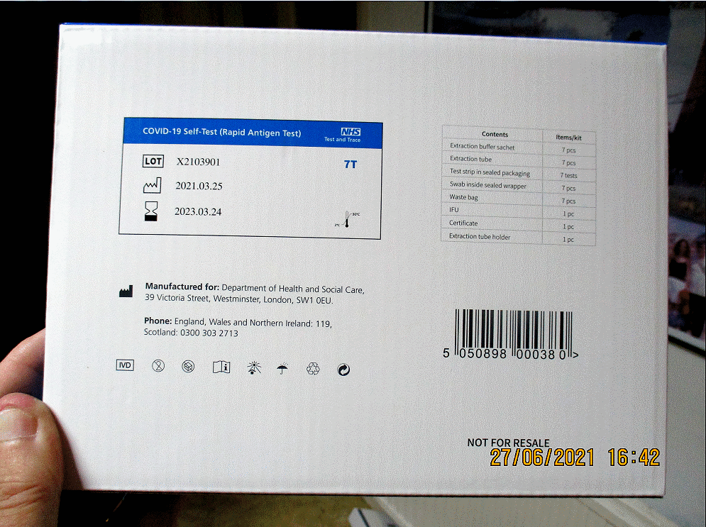 gave free 7 pack of "COVID-19 Self-Test (Rapid Antigen Test) Made in China with Manufactur's address ;-) Got home; Made this this update;