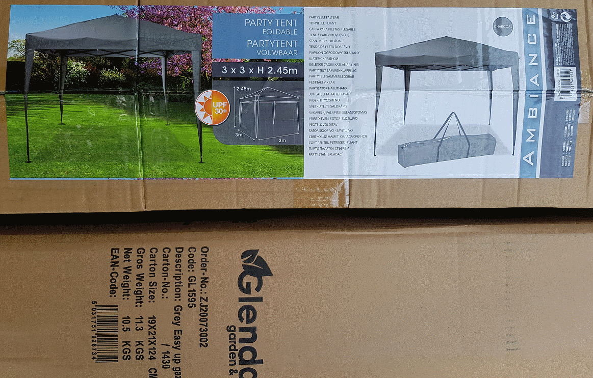 gazeebo, quickly and easily put up today, and three garden chairs in the back of my old Merc'.