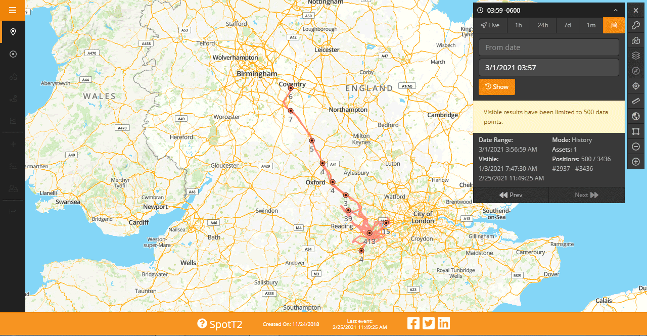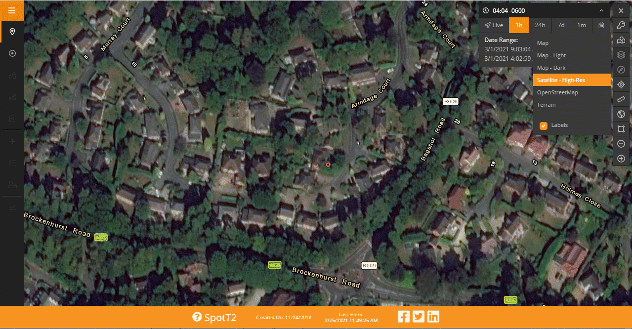it has - typically months, the last 7 days, 24 hours, or live. Click on these examples to enlarge. If you switch to satellite map,