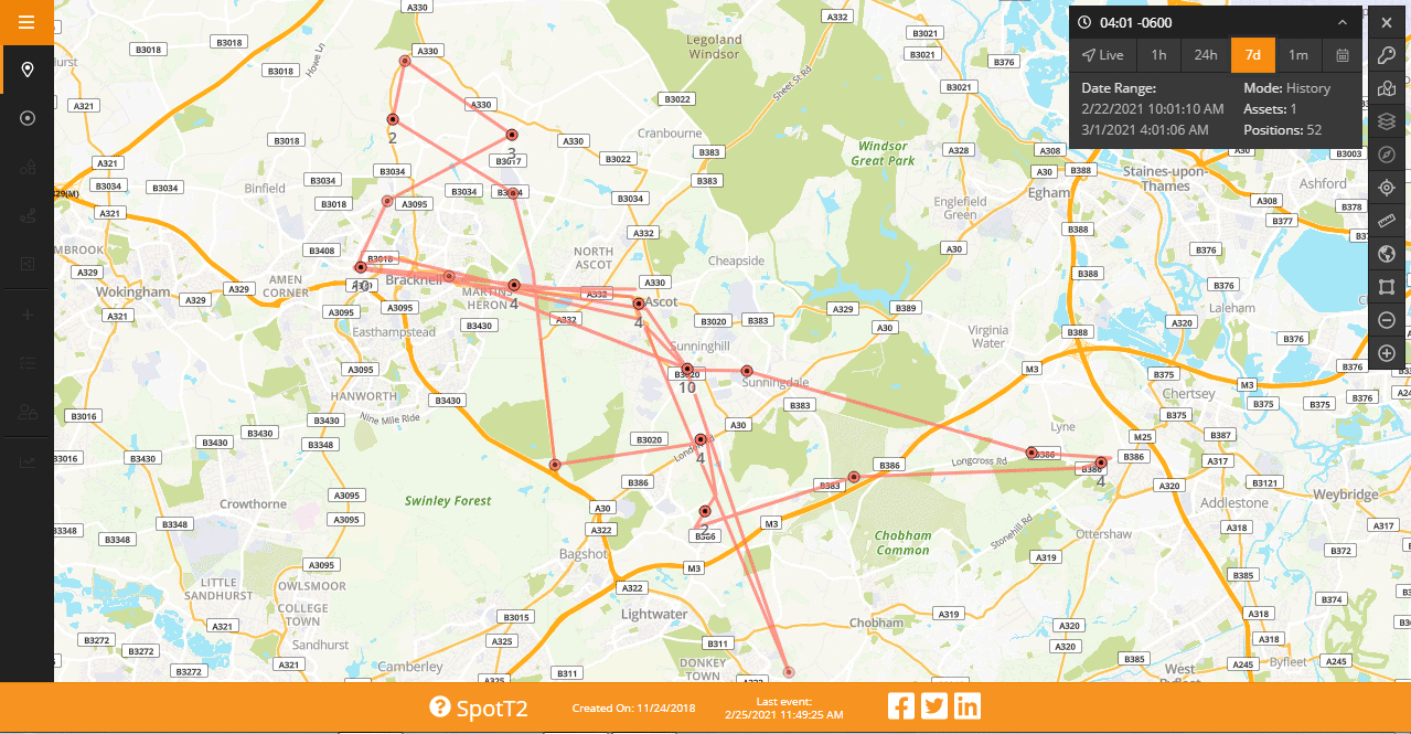 or these pictures below of the trackers in Robin's hand. For SPOT you then tap on the red button, to allow it's limited 500 points of data, then can choose all