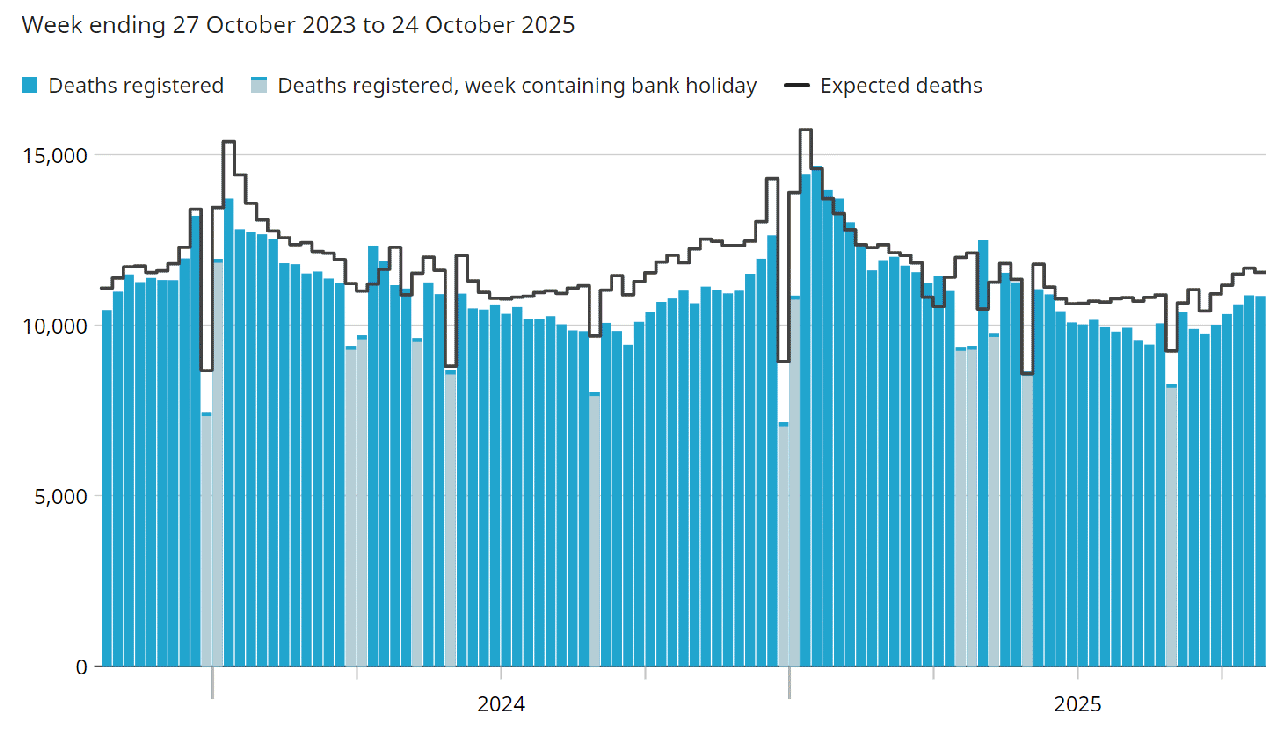 Tuesday 3rd November 2020: The ONS switch to publishing seperate graphs for England and Wales, instead of the combined graph since April. 23rd November 2021: ONS revert back to a combined graph, and better format. Well Done Guys ! :-)