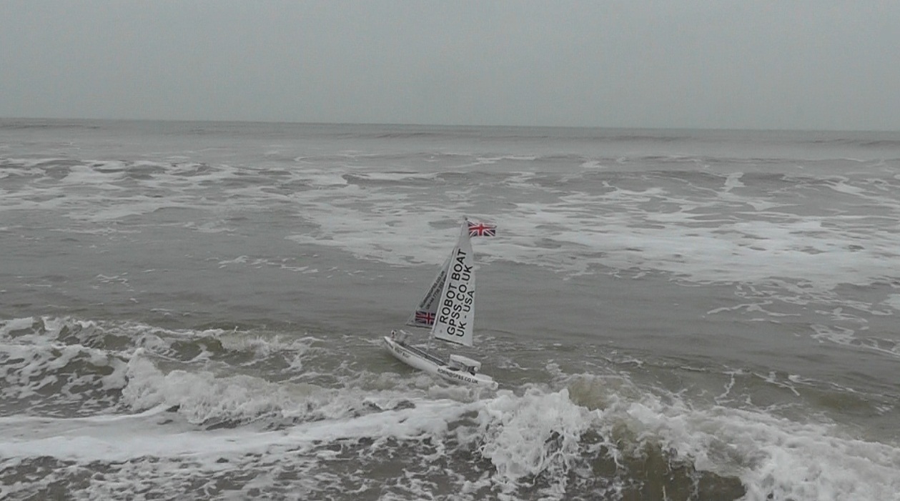 In brief: Snoopy tried, but failed to get away from the beach, in waves that were bigger than on his first attempt. He sustained minor damage, easy to fix, but it was decided unwise to try again that day, and he was brought home.