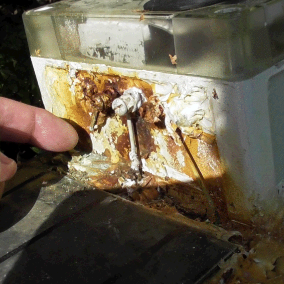 Wife June's kitchen knife was used to lift those 5v solar panels - and reveal that mess of corroded and broken wiring !