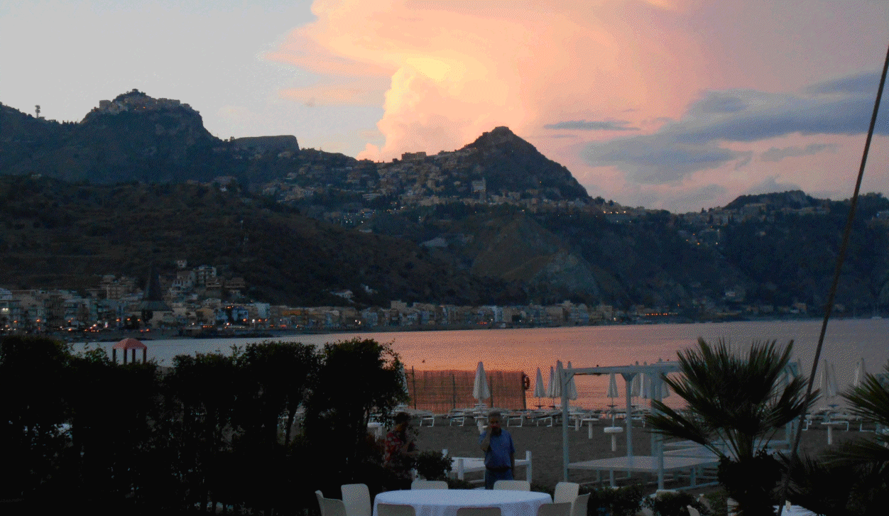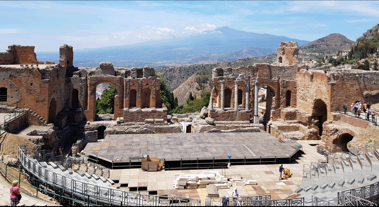taking the bus up to Taormina, walking through the ancient greek ruins of the Gardens of Naxos,